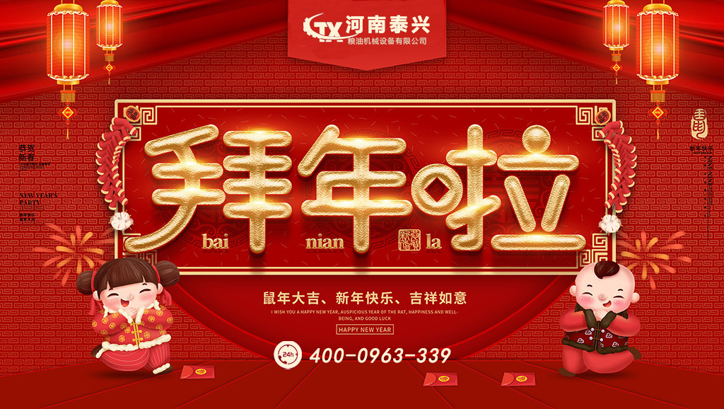 值此新春佳節(jié)來(lái)臨之際,泰興糧機(jī)全體員工對(duì)新老客戶(hù)一年來(lái)的關(guān)注和支持表示由衷的感謝!我們也將在新的一年為您提供更優(yōu)質(zhì)的產(chǎn)品和服務(wù)!